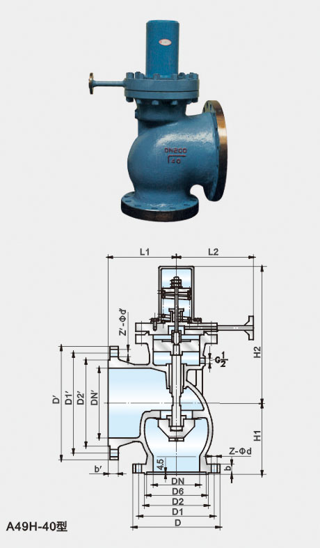 A49H-40型主安全閥,安全閥用途 該裝置安全閥適用干工作溫度450℃的蒸汽管路,主安全閥與沖量安全閥應配套使用,以沖量安全閥開啟壓力信號使主安全閥開啟,繼而全閥排放;當壓力降到規定值時,主安全閥自動關閉,是近代節能工程普遍使用的減溫減壓裝里中配套設備。廣泛使用于熱電聯產、輕紡、石化...